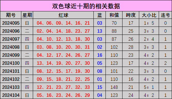双色球上期开出奖号:05 16 23 24 26 29+04,红球分析:大小比:4:2,和值:123,跨度:24G买球网体育信息,开出连号23 24。