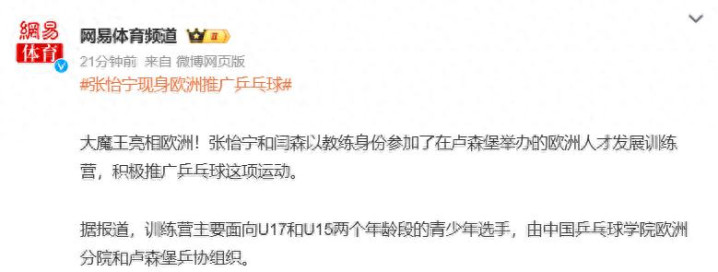 北京时刻9月2日,据《网易体育频说念》报说念,有女乒“大魔王”名称的张怡宁现身欧洲,而这次的欧洲之行,她将以教授身份参加了在卢森堡举办的欧洲东说念主才发展检会营,而这个检会营面向的选手全是欧洲U17和U15两个年岁段的青少年畅通员,而况这背后是由中国乒乓球学院欧洲分院和卢森堡乒协组织。那么音问一出,张怡宁远赴欧洲执教的音问,褒贬区呈南北极分化,其实这背后,是国乒不才一盘大棋