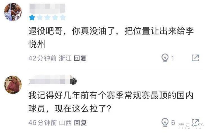 本轮浙江被史姑娘绝杀,以2分不敌深圳的比赛,吴前不错说是球队输球的罪魁罪魁,凡是他能多掷中一个三分球,都不至于让球队为山止篑。全场比赛打下来,吴前在27分钟的上场本事里,6中1,三分球4中1,拿到5分5助攻,-7的正负值为全队最差。他的低迷,也引起了球迷的热议:“退役吧,你真没油了,把位置让给李悦洲吧”、“运行向范子铭看都了”。
