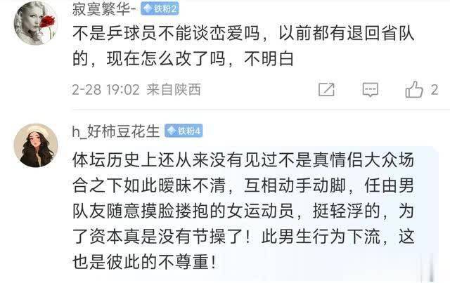 国乒球迷则指出:体坛历史上还从来莫得见过不是真情侣,却民众场合之下如斯无极不清,相互执手执脚,任由男队友爽直执脸、搂抱的女辅导员,挺懆急的,为了老本竟然莫得节操了!