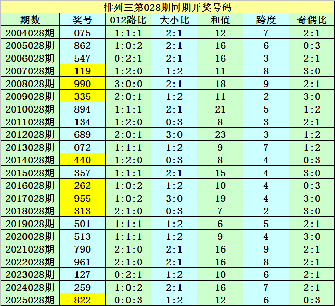 号码012路比:第028期历史同时号码012路比为26:19:21,本期瞻望012路比开出2:0:1。