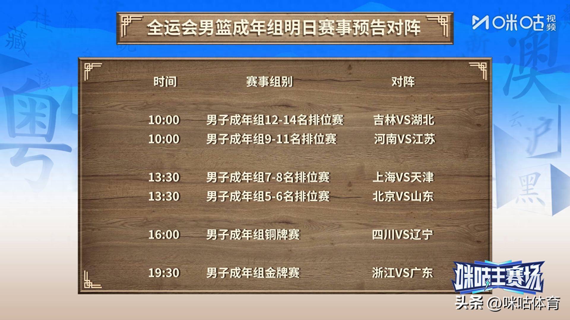 咪咕视频将全程直播全运会男篮格式决赛日的两场比赛,来日咱们不见不散!