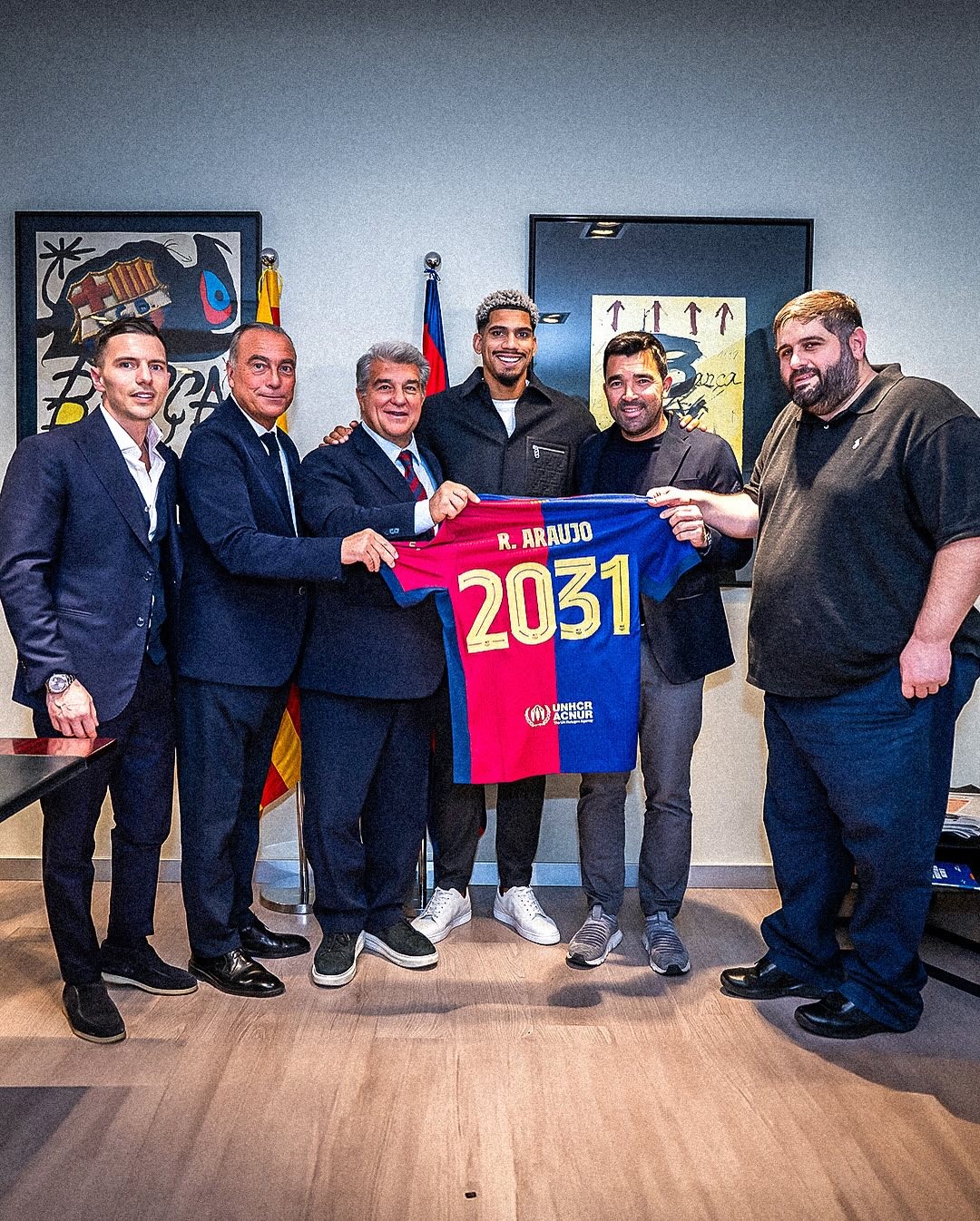 阿劳霍在搪塞媒体晒出他在续约本日与拉波尔塔等巴萨高层以及家东说念主、一又友的合照体育赛事直播,并写说念:“我终点风物与巴塞罗那续约。我终点感谢俱乐部和球迷们自2018年我来到这里以来,在场内和场外赐与我的一切。咱们将不时沿途郁勃,共同书写这段光泽的历史。巴萨加油!! 💙❤️🦍 2️⃣0️⃣3️⃣1️⃣ ”